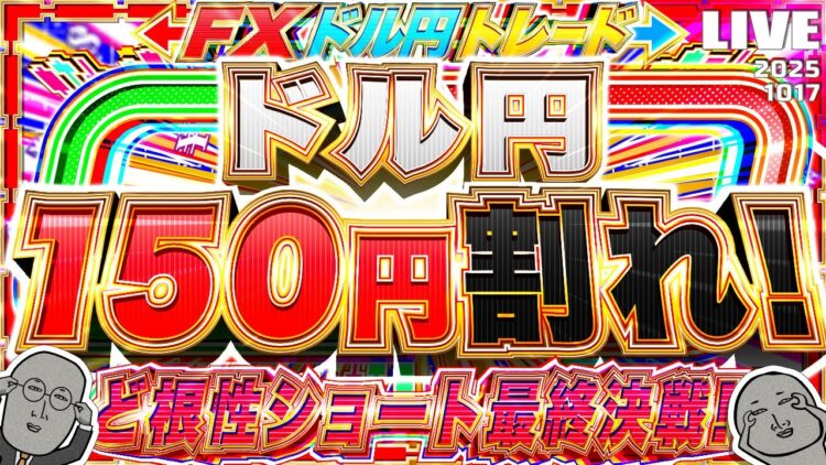 いろいろあってドル円の下落が継続中!ついに150円割れ!ど根性ショート、最終決戦!